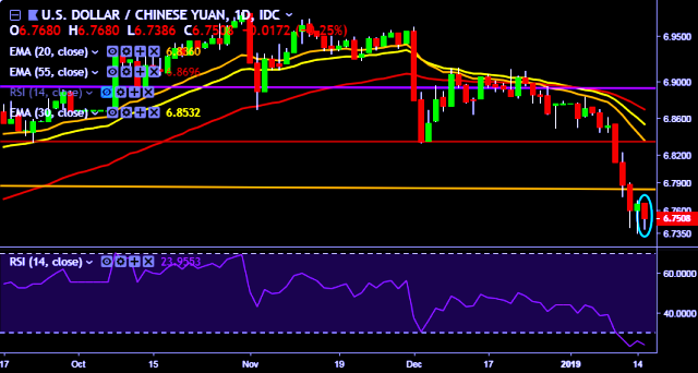 We prefer to take short position on USD/CNY around 6.7560, stop loss at 6.7700 and target of 6.7050.