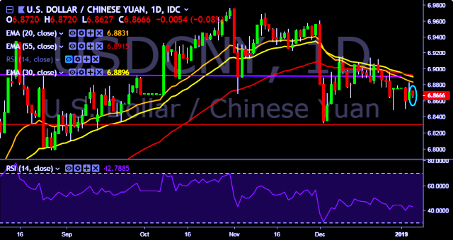 We prefer to take short position on USD/CNY around 6.87, stop loss at 6.8886 and target of 6.8525.