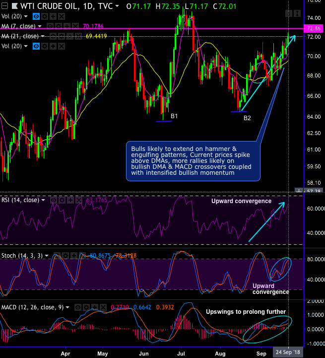 Overall, on trading grounds, it is good to buy at current levels for further upside traction upto $72.86 levels for the strict stop loss of $71.35 levels.