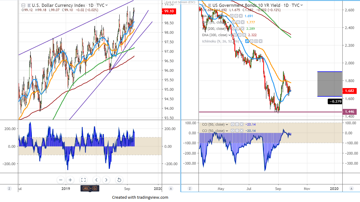 US 10 year bond yield has halted its bullish trend at 1.907% and lost nearly 14% and is currently trading at 1.682%. The yield curve inversion between US 10 year and 2-year has gone and spread widened to 4.4 bps from 2 bps.