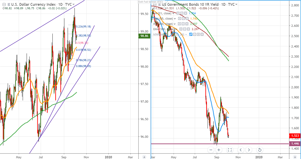 The ISM manufacturing PMI came at 47.1% lowest level since 2009 and services PMI dropped to 52.6 well below expectations of 55. US economy has added 136000 jobs in Sep and the unemployment rate around 3.5%.
