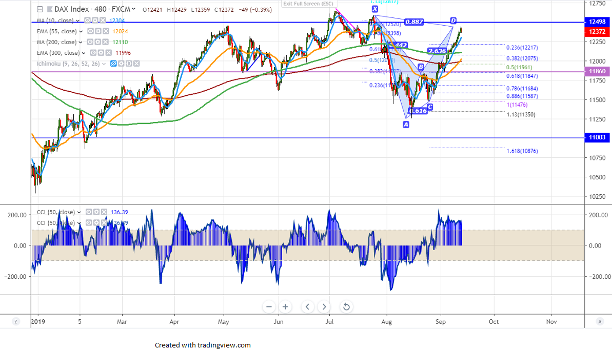 DAX30 was trading higher for the past 2-week and jumped nearly 1000 points following footsteps of the global market. US markets especially S&P500 climbed more than 7.5% on US-China trade talk optimism. Global bond yield recovered sharply with the German 10- year bund yield more than 25%. the index hits 12440 and is currently trading around 12372.