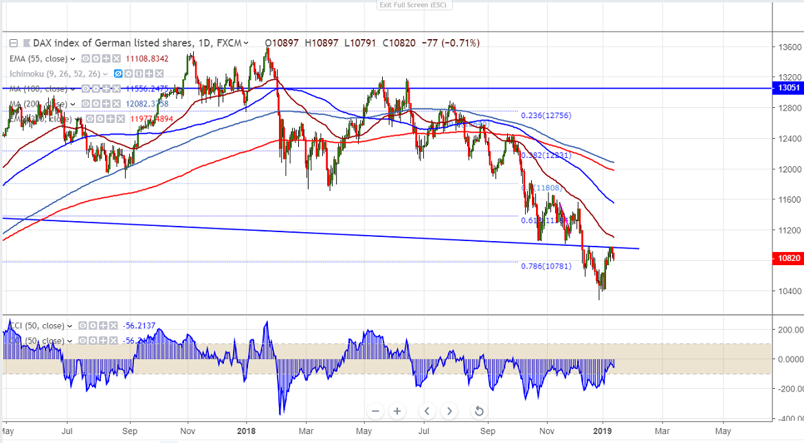 DAX30 has halted its 10 days of bullishness and shown a minor weakness. The index jumped nearly 6.75% from low of 10281 and lost more than 1.5% from high of 10977 . It is currently trading around 10819.