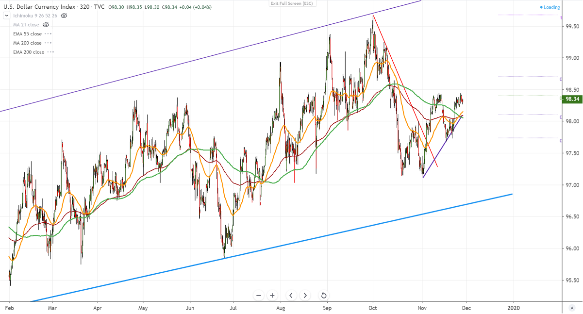 DXY has once again failed after hitting a high of 98.44 yesterday. It has formed almost a triple top near 98.45 and further bullishness can be seen only beyond that level. It hits a low of 98.26 at the time of writing and is currently trading around 98.32.