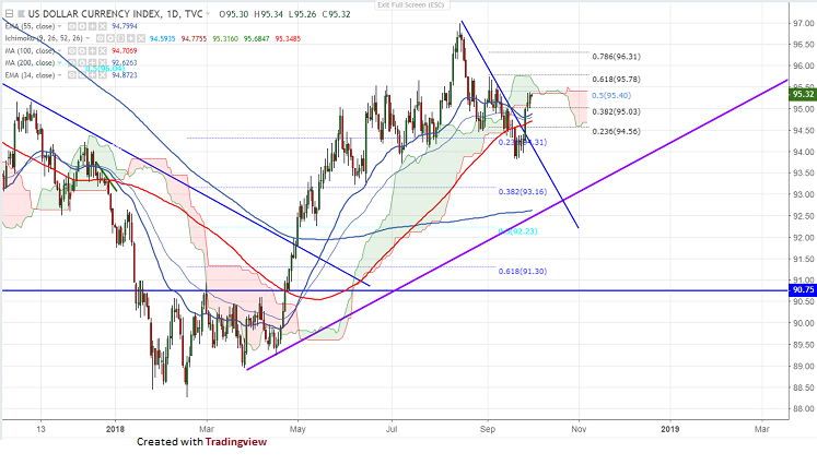 On the lower side, near term support is around 94.65 (100- day MA) and any break below will drag the pair to 94/93.70. DXY should break below 93.70 for further weakness.