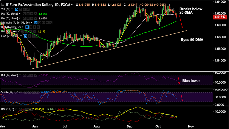 - EUR/AUD price action has broken below 20-DMA and 5-DMA is on verge of bearish crossover on 20-DMA.