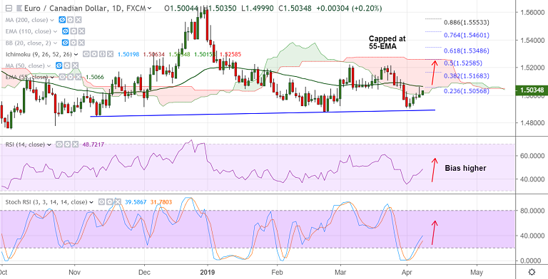 Resistance levels - 1.5066 (55-EMA), 1.5130 (Apr 8 high), 1.5168 (38.2% Fib)