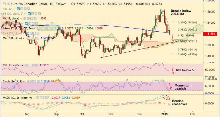 - Price action has broken below 200-DMA raising scope for further wekaness.