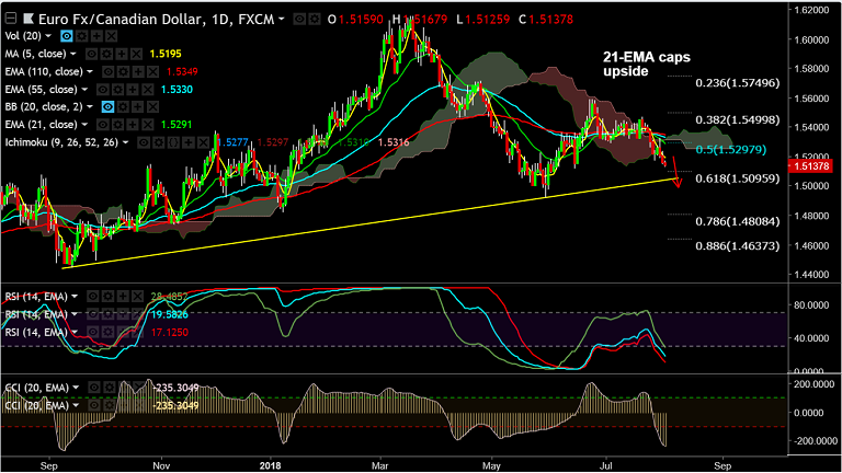 - EUR/CAD hits 7-week lows at 1.5125, further downside on cards.