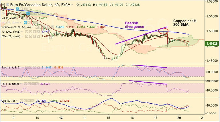 - EUR/CAD has failed to extend gains above 1H 200-SMA.