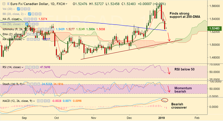 - The pair has paused downside, finds major support at 200-DMA at 1.5217. We see weakness only on break below.
