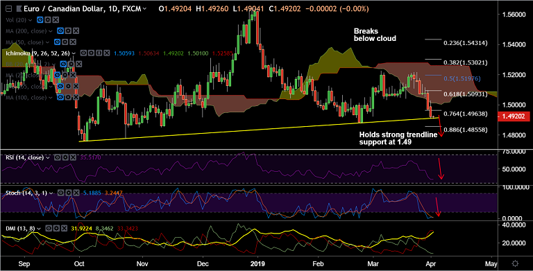 - The pair finds major trendline support at 1.49 and break below will confirm further downside.