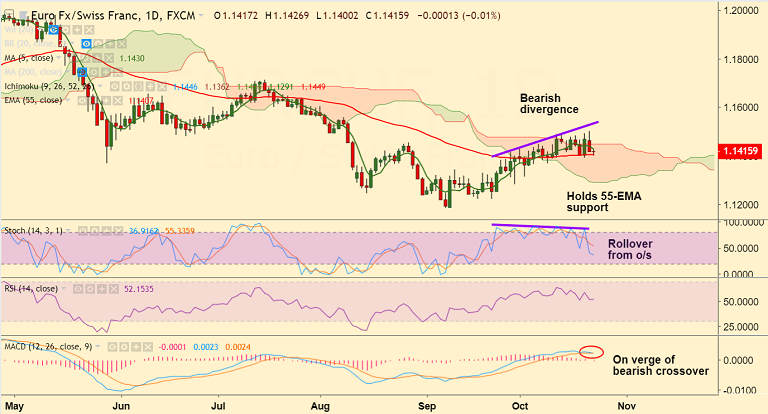 Support levels - 1.1407 (55-EMA), 1.1343 (lower BB), 1.1255 (Sept 21 low)