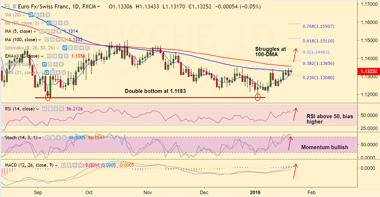 - EUR/CHF struggles to break above 100-DMA. The pair has been capped below from past sessions.