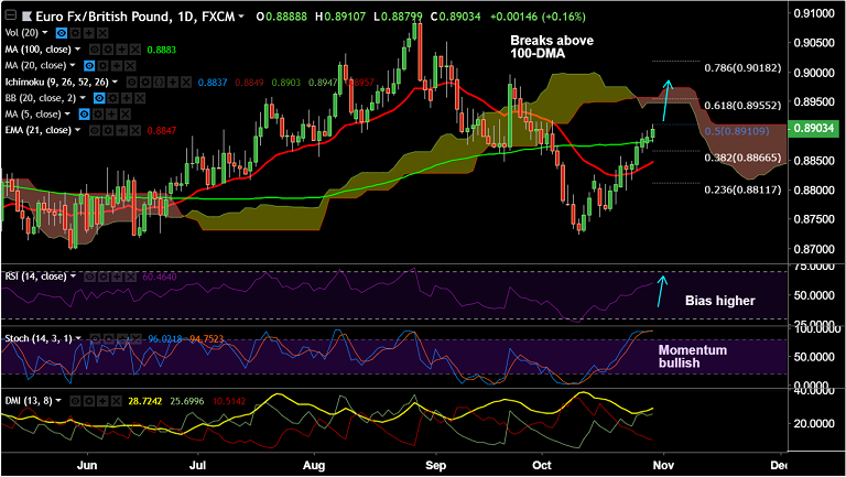 Support levels - 0.8879 (5-DMA), 0.8868 (converged 55 and 110 EMAs)