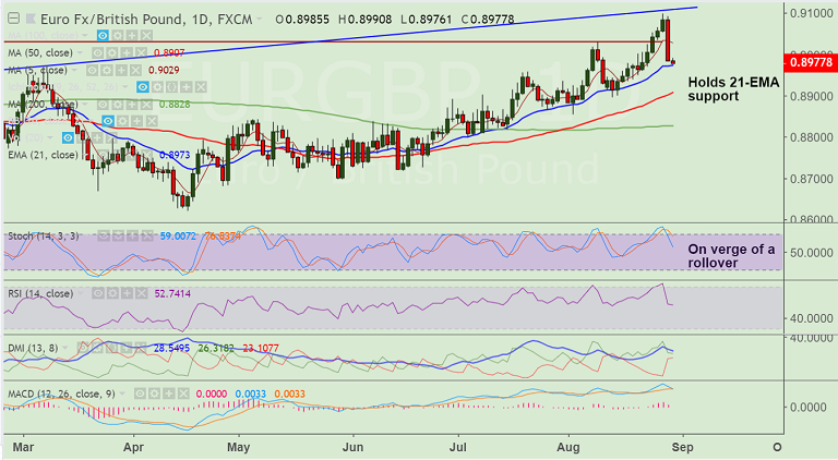 Support levels - 0.8974 (21-EMA), 0.8907 (50-DMA), 0.8828 (200-DMA)