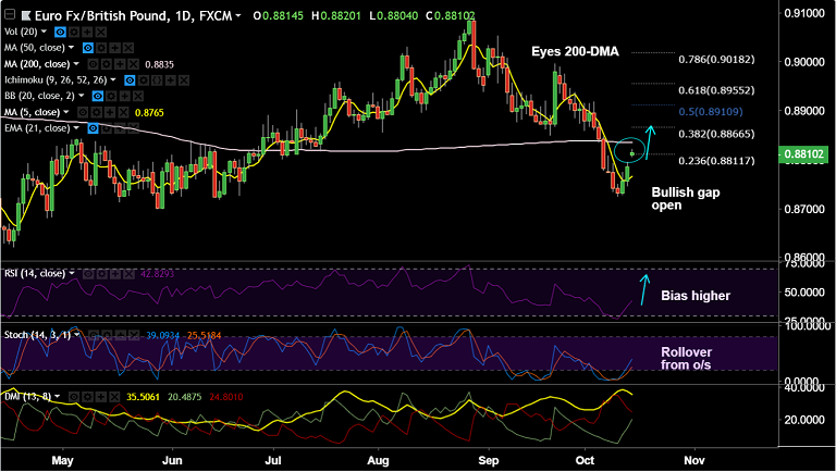 Support levels - 0.8798 (1H 200-SMA), 0.8765 (5-DMA), 0.8723 (Oct 10 low)