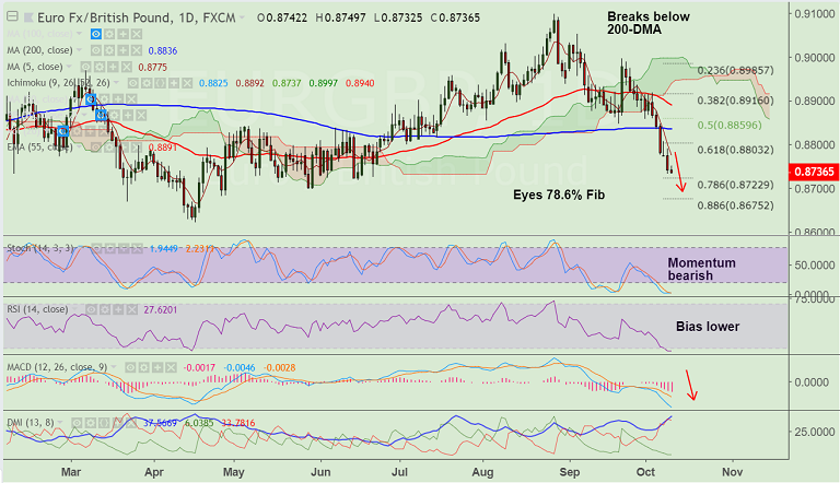 Resistance levels - 0.8775 (5-DMA), 0.8803 (61.8% Fib), 0.8836 (200-DMA)