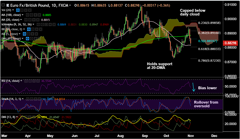 Support levels - 0.8815 (20-DMA), 0.8803 (61.8% Fib), 0.8723 (Oct 10 low)