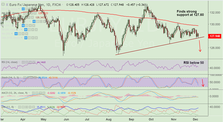 - Break below 127.65 to see downside till 126.63. Further weakness to see test of 124.90.