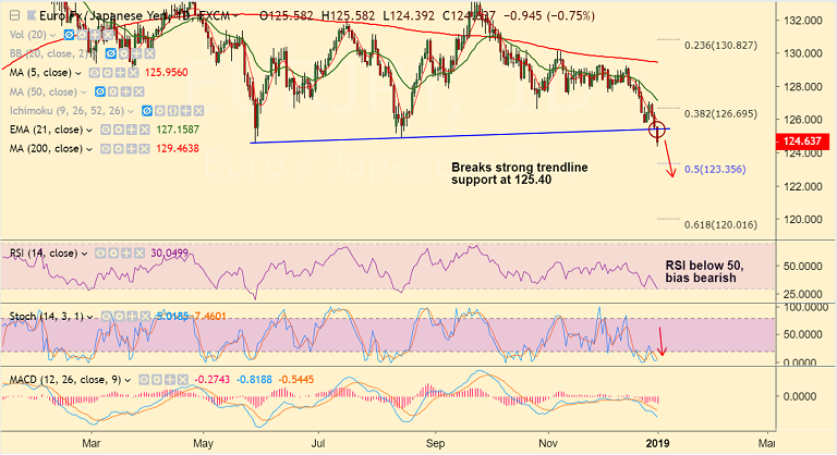 Resistance levels - 124.74 (5-DMA), 125.40 (Trendline), 126.54 (21-EMA)