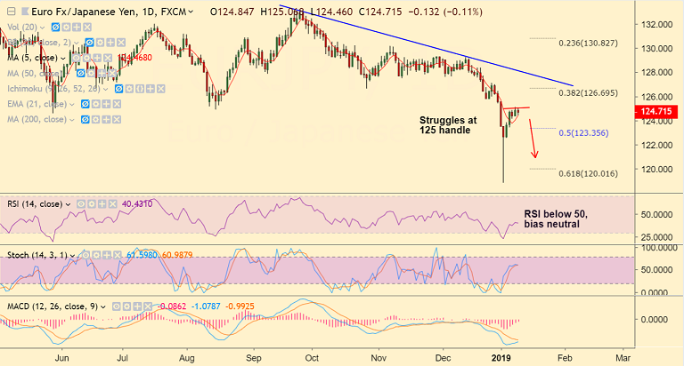 - EUR/JPY struggles to extend gains above 125 mark, intraday bias neutral.