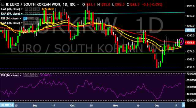 - EUR/KRW is currently trading around 1,283 mark.