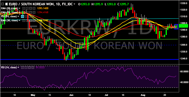- EUR/KRW is currently trading around 1,295 mark.