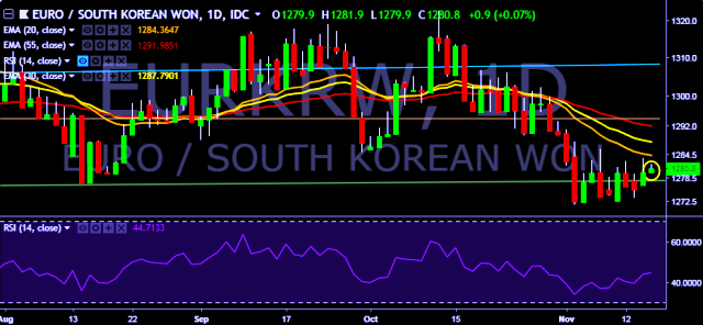 - Pair made intraday high at 1,281 and low at 1,279 levels.