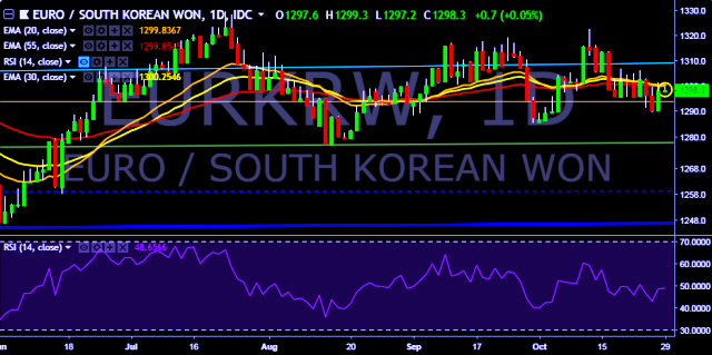 - EUR/KRW is currently trading around 1,297 mark.