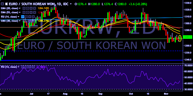 - EUR/KRW is currently trading around 1,280 mark.