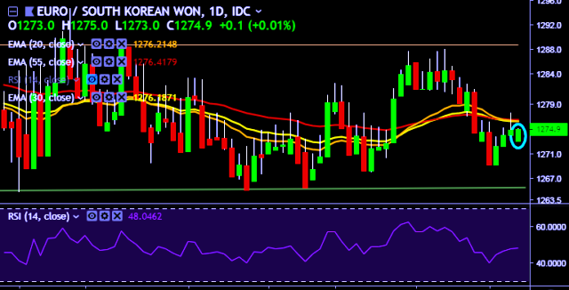 - EUR/KRW is currently trading around 1,275 mark.