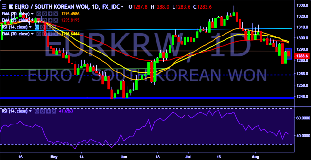 We prefer to take short position on EUR/KRW only below 1,277, stop loss at 1,294 and target of 1,258.