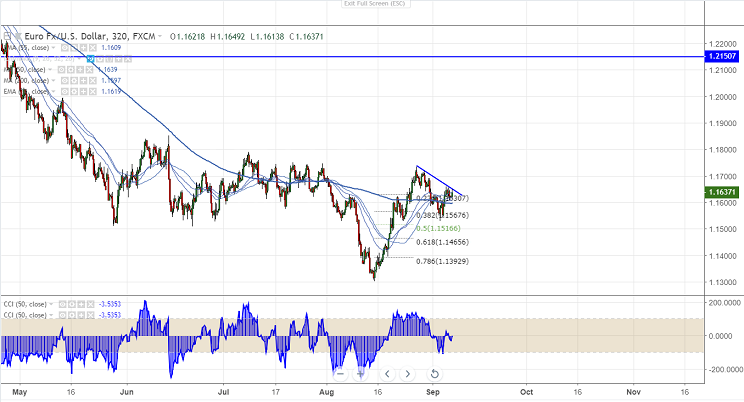 EURUSD is showing strength and is struggling to break below 1.1600 level. The pair hits low of 1.16054 and shown a good jump from that level. It is currently trading around 1.16455.