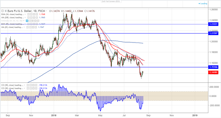 The near term resistance is around 1.1447 (10 day MA) and any break above targets 1.1500/1.1560 (20- day MA).