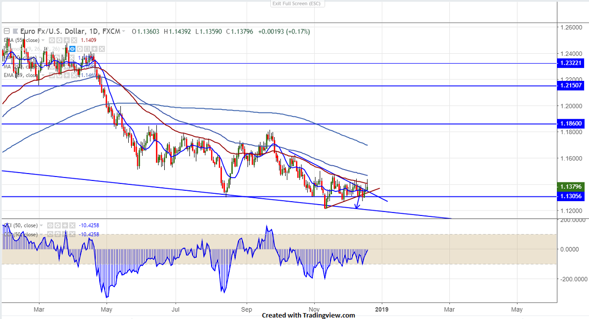 EURUSD pares most of its gains made after Fed hiked interest rates by 25 basis point for for fourth time in 2018 .The pair hits intraday high of and is currently trading around 1.139130.