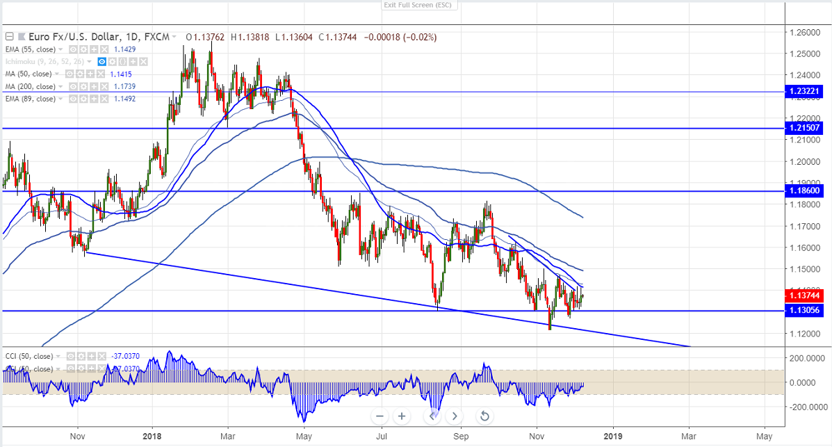 Major economic event for the day is US Non Farm Payroll. US economy is expected to add 198000 jobs in the month of Nov compared to 250k in Oct ,unemployment rate at 3.7% and weekly earnings are expected to be stable at 0.3%m/m,3.1% Y/Y.Any major surprise will have major impact on EURUSD.