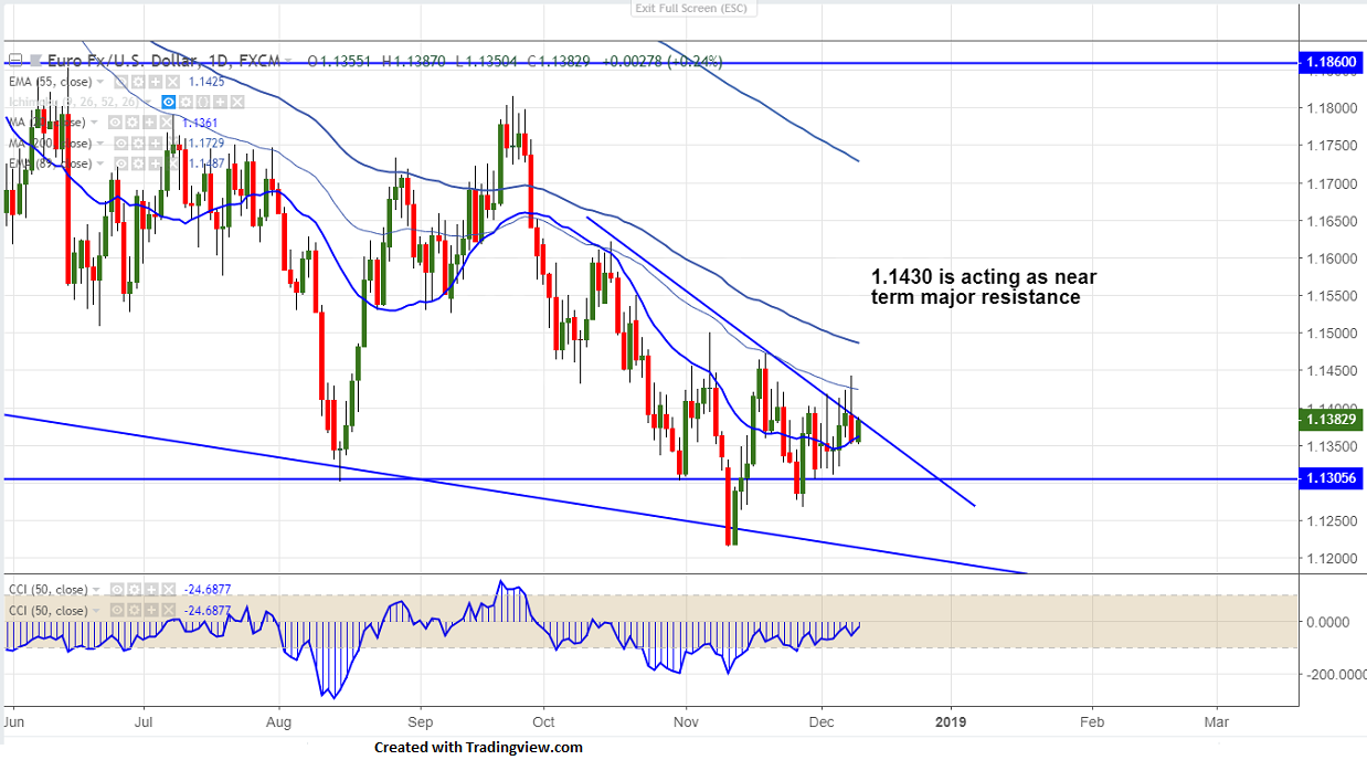 EURUSD has lost nearly 90 pips on Brexit uncertainty. GBP was trading lower after UK PM May announced that there will be delay to the ’meaningful vote’.The pair hits high of 1.14427 yesterday and declined till 1.13505.It is currently trading around 1.13826.