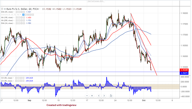 EURUSD was trading lower and has lost more than 80 pips from the high of 1.16246. The major decline was mainly due to political uncertainty in Italy’s and hawkish fed. The Italian 2019-2021 budget deficit is at 2.4%of GDP . The Italian 10 year bond yield gone up by more than 25% in past three trading days. German and Italian 10 year spread highest in 3 weeks. US 10 year bond yield has recovered more than 2% from low
