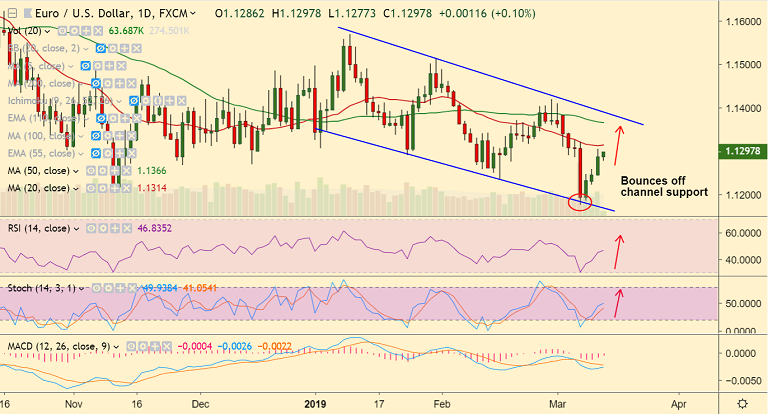 - Breakout at 20-DMA could see upside till 50-DMA at 1.1366 ahead of channel top at 1.1375.