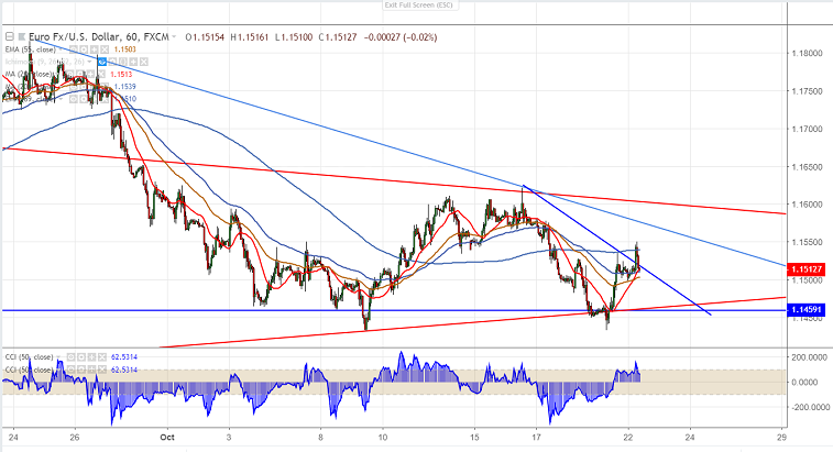 Technically the pair is trading slightly above 200- H MA at 1.15390 and any houlry close above targets 1.1600/1.16200. Any convincing break above 1.16212 high made on Oct 16th confirms further jump till 1.1700/1.1745.
