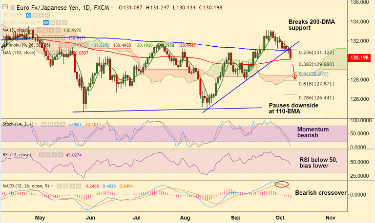 - EUR/JPY slumps below 200-DMA, breaks 130 handle to hit 4-week lows at 129.93.