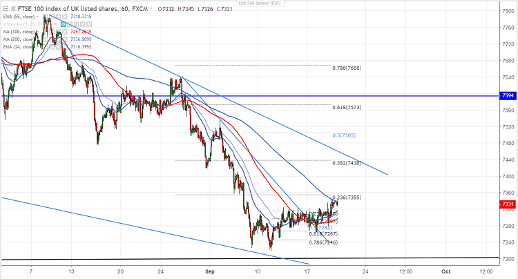 FTSE100 has lost more than 7% from the high of 7791 and hits low of 7213. The index jumped till 7345 and is currently trading around 7337.