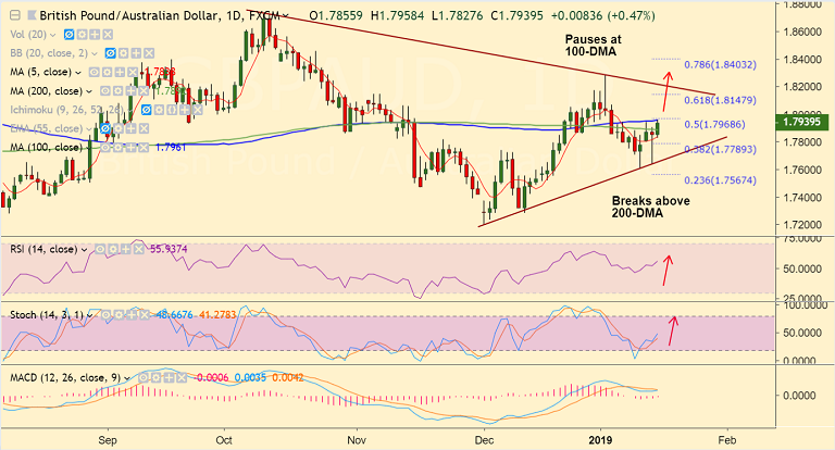 - GBP/AUD has broken past 200-DMA resistance and has paused shy of 100-DMA at 1.7961.