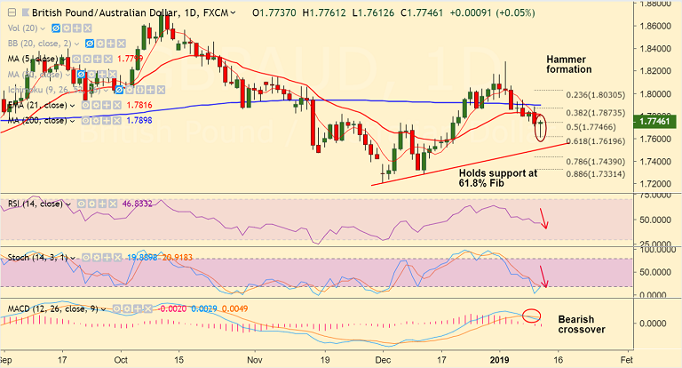 - GBP/AUD edges higher from session lows at 1.7612, trades largely unchanged at 1.7751 at 1145 GMT.