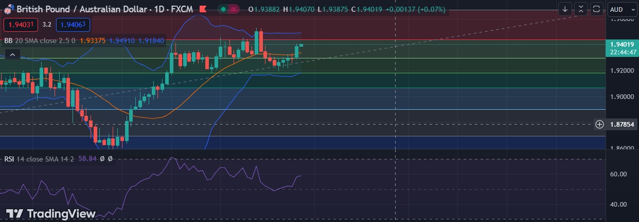 • Immediate resistance is located at 1.9408 (23.6%fib), any close above will push the pair towards 1.9491 (Higher BB).