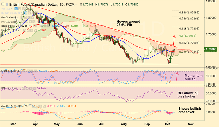 Support levels - 1.7024 (23.6% Fib), 1.6958 (20-DMA), 1.6838 (cloud base)