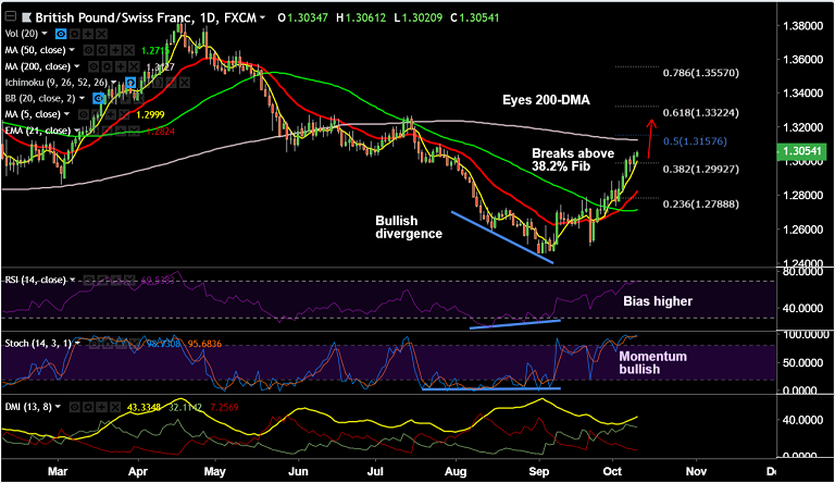 - GBP/CHF has been on an upward spiral since beginning of the September month.