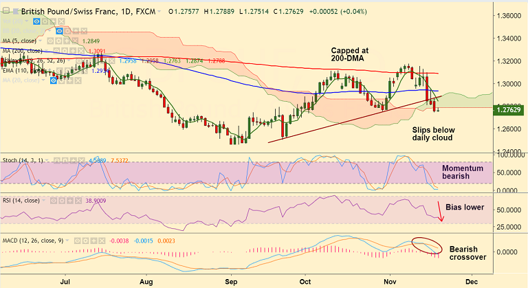 Resistance levels - 1.2788 (cloud bottom), 1.2849 (5-DMA), 1.2934 (110-EMA)