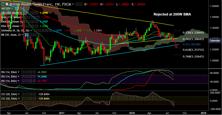 - GBP/CHF breaks strong trendline support at 1.2980, further weakness on cards.